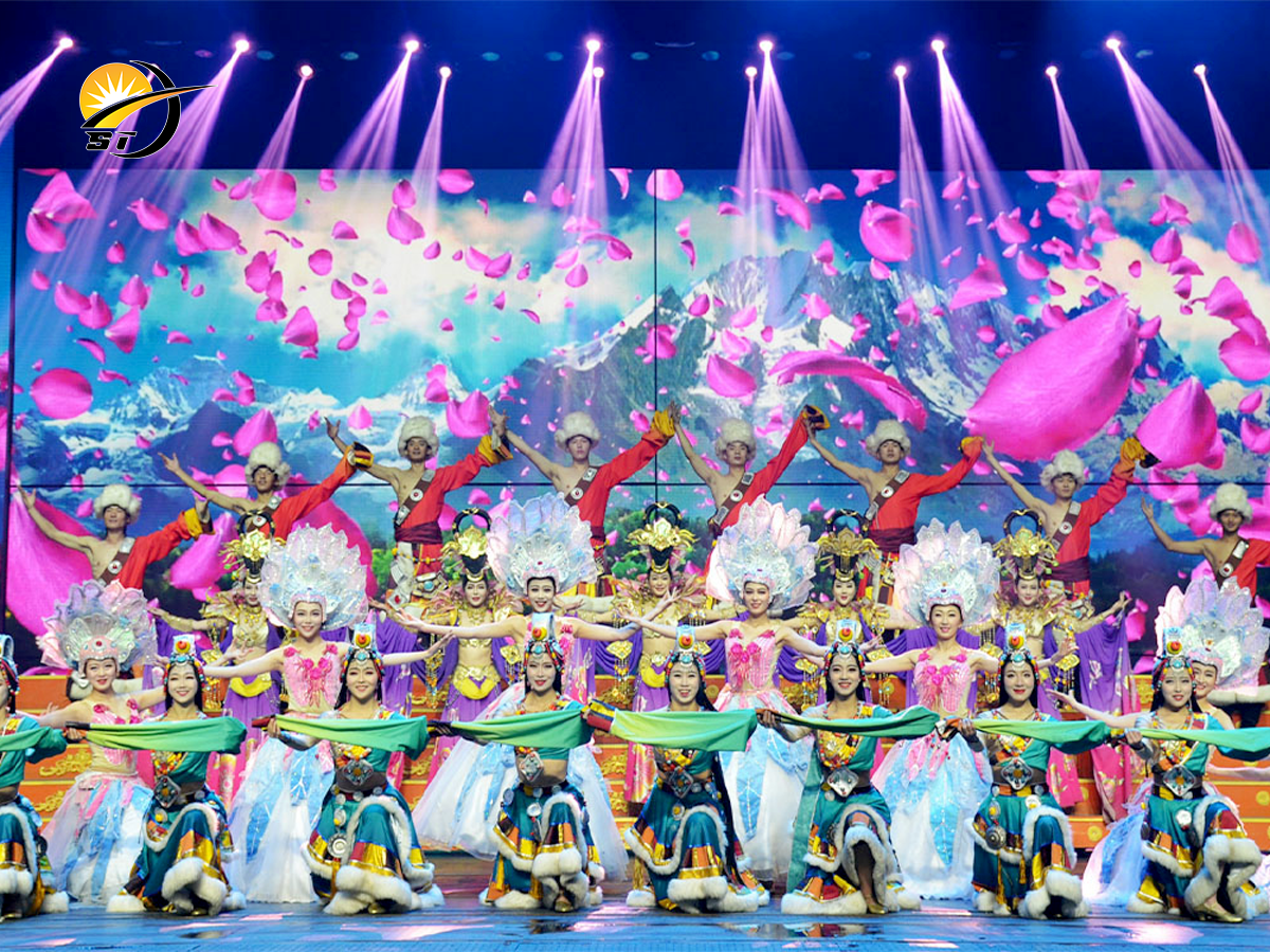 Sau bữa trưa, Quý khách có thể thưởng thức chương trình “Ấn Tượng Lệ Giang” do đạo diễn lừng danh Trương Nghệ Mưu dàn dựng. Một vở nhạc kịch được biểu diễn ngoài trời, trên độ cao hơn 3.000m, với cảnh nền sân khấu chính là bầu trời và dãy núi Ngọc Long…, thật khó tưởng tượng nếu không một lần “mục sở thị” (show diễn được tặng trong chương trình).