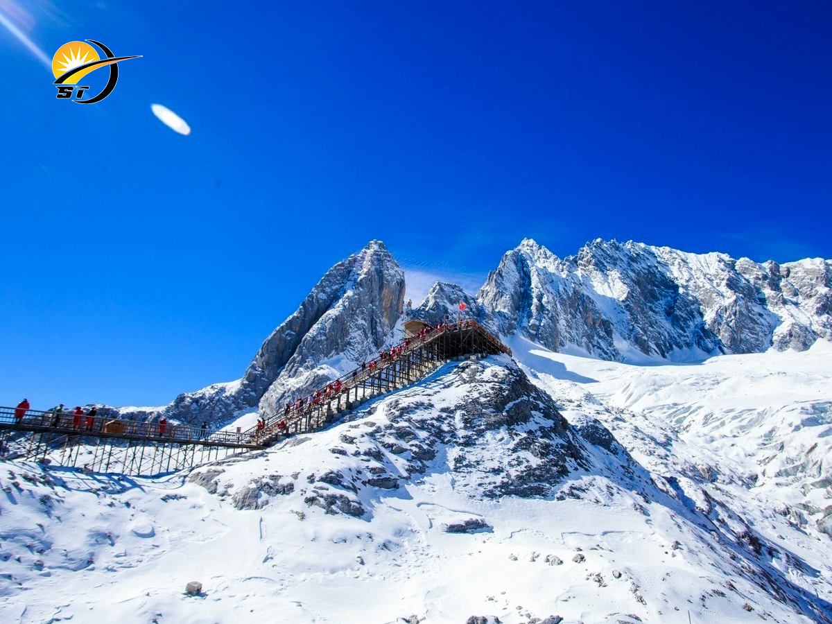 - Quý khách đi cáp treo nhỏ lên thăm Vân San Bình – độ cao 3200m ngắm cảnh đẹp Núi tuyết Ngọc Long - ngọn núi cao 5596 m tuyết phủ quanh năm. Phần băng vĩnh cửu ánh lên một màu xanh như ngọc.